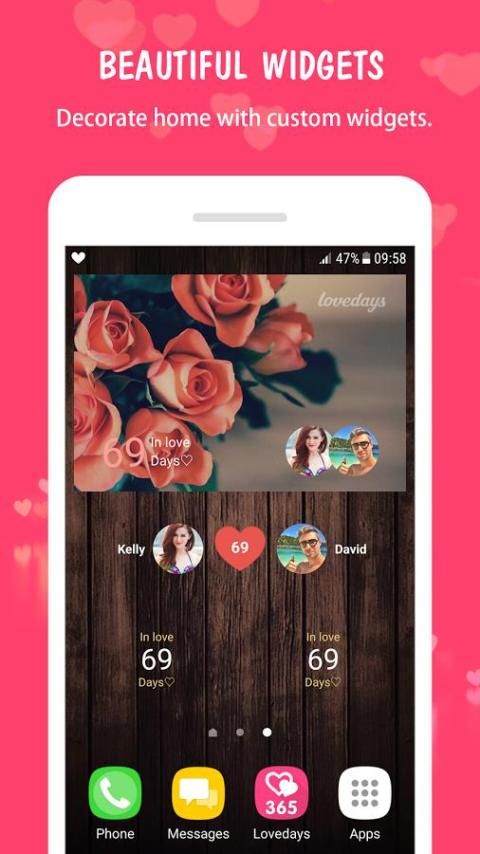 Melihat berapa lama Anda telah bersama dengan kekasih Anda dengan widget yang berbeda. Merayakan ulang tahun Anda dengan kenangan Anda.