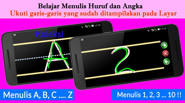 ★ Belajar menulis angka dan huruf. Anak dapat menulis dengan mengikuti garis-garis yang sudah tampil pada layar.