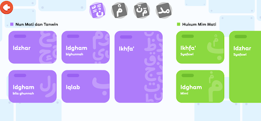 - Kategorisasi menu belajar hukum tajwid lebih rapi dan mudah