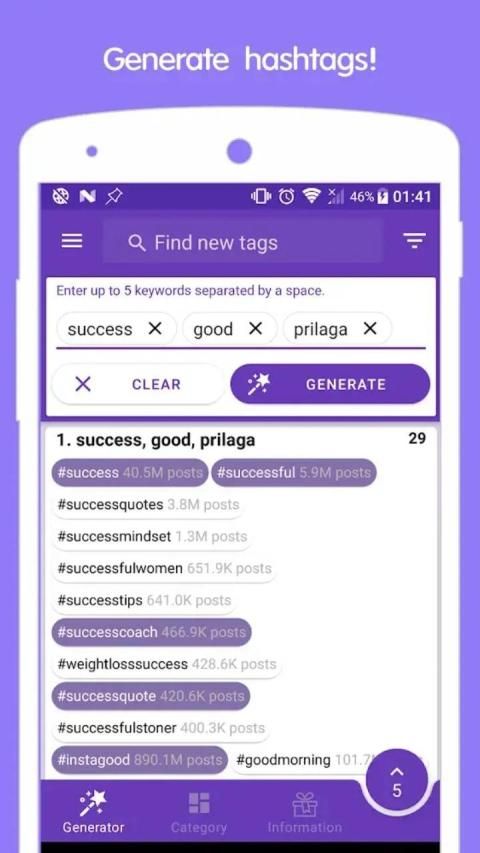 Anda mungkin mendapatkan lebih banyak suka dan pengikut menggunakan aplikasi tagar ini di foto Anda di status Instagramm, Facebookk, dan Twitterr. Tag cepat, mudah, dan terbaik!