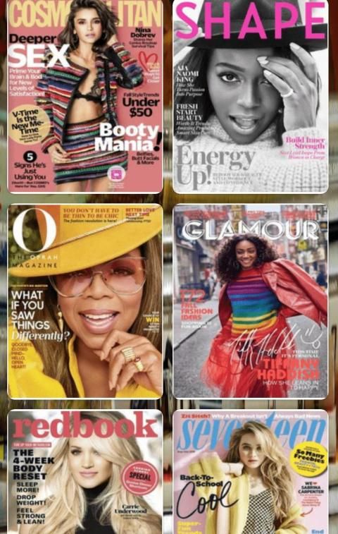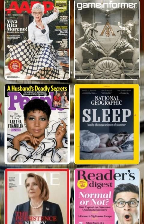 Anda dapat menemukan majalah berikutnya Aarp, Game informer, People, National Geographic, Time, Reader's digest, Rifleman, Men's Health, Smithsonian, Uang, Guideposts, Entertainment Weekly, Rolling Stone, Ebony, Mobil dan Driver, Mekanika Populer, Sports Illustrated, Golf Digest, majalah Golf, Runner's, Bicycling, Tenis, Slam, Hoop, Stack, Surfer, Backpacker, Rumah dan Kebun Lebih Baik, Housekeeping Baik, Hari Perempuan, Kehidupan Selatan, Taste of Home, Martha Stewart Hidup, Nyata Sederhana, Cahaya Memasak, Makanan Majalah Jaringan, Setiap Hari bersama Rachael Ray, Bon Appétit, Pencegahan, Kehidupan Berbangsa, Semua Resep, Matahari Terbenam, Kosmopolitan, Bentuk, O, Majalah Oprah, Glamor, Buku Merah, Tujuh Belas, InStyle, Kesehatan Perempuan, Kesehatan, Vanity Fair, Vogue dan Allure