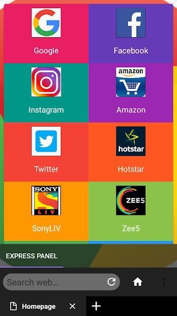 Ini adalah aplikasi browser berkecepatan tinggi. Ini memiliki koleksi yang bagus seperti Flipkart Google; Amazon; Facebook dll. Anda dapat melihat berbagai jenis pertandingan seperti cricket; sepak bola dll. Anda dapat melihat banyak serial TV Zee dan Hotstar.