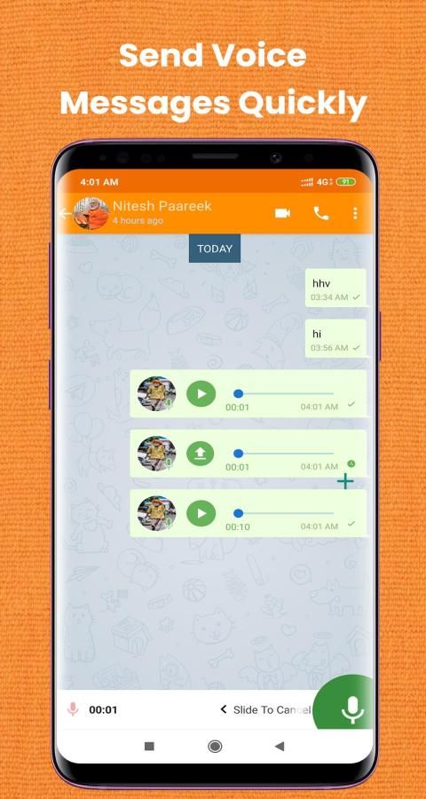 Ketuk dan Tahan untuk Merekam dan berbagi Pesan Suara
