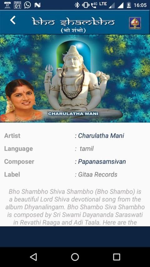 Bho Shambho Shiva Shambho (Bho Shambo) adalah Dewa Siwa lagu kebaktian indah dari album Dhyanalingam. Bho Shambo Siva Shambho terdiri oleh Sri Swami Dayananda Saraswati di Revathi Raaga dan Adi Taala. Berikut adalah lirik Bho Shambho Siwa Shambho song.This kebaktian lagu yang dinyanyikan oleh Charulatha Mani.the musik yang disusun oleh komposer terkenal