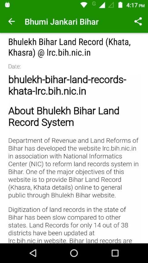 Aplikasi ini menyediakan Bihar Bhumi Jankari - rincian Land Record of Bihar.