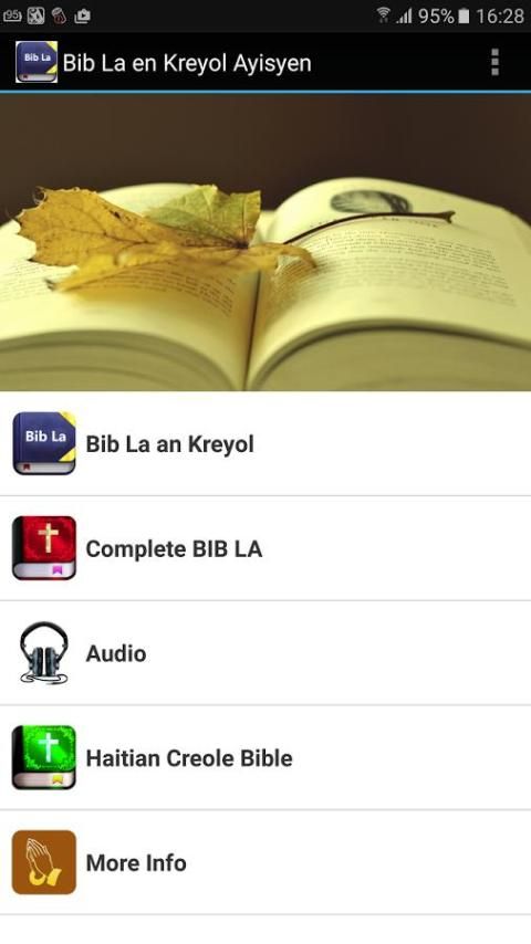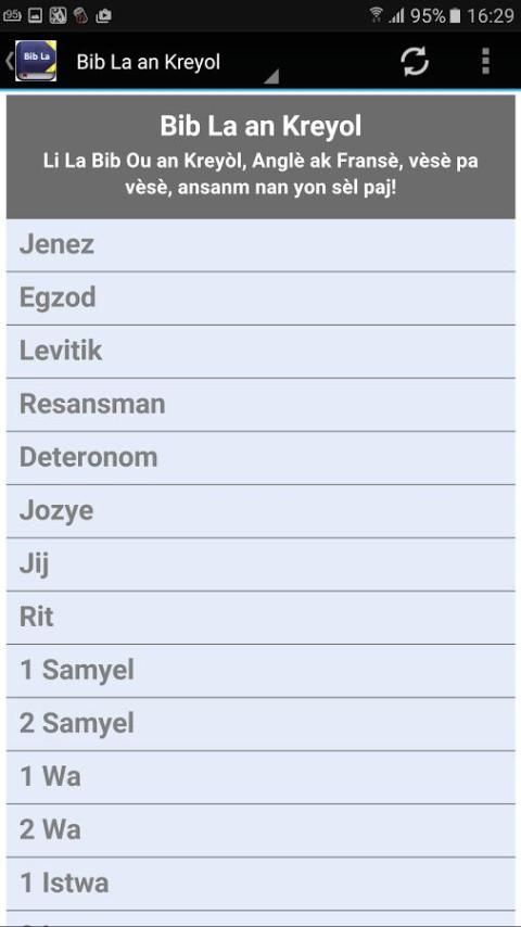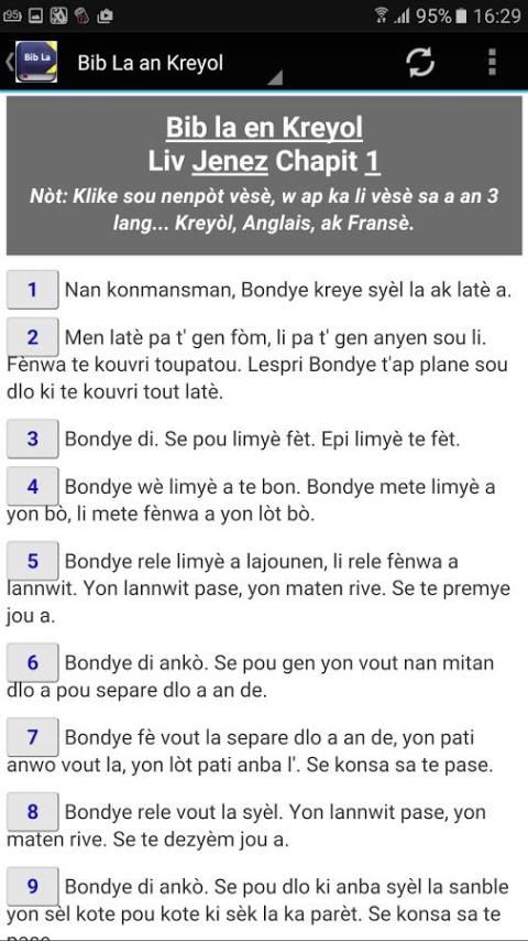 Aplikasi ini memberikan Anda menyelesaikan Bib La sebuah Ayisyen Kreyol juga dikenal sebagai Haiti Creole Version (HCV). Seiring dengan versi readeble dari Alkitab kami menawarkan versi audio dari Perjanjian Baru dari Bib La di Kreyol (Creole) bahasa. Juga kami menawarkan banyak sumber Bib La memastikan bahwa setiap pengguna akan menyukai aplikasi ini.