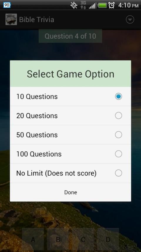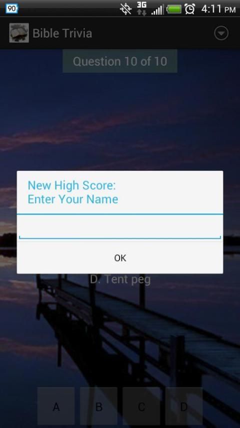 Kuis sendiri pada pertanyaan tentang Alkitab dan mempertajam pengetahuan Anda sambil bersenang-senang. Jauhkan skor untuk mencoba dan mengalahkan Anda sendiri atau memilih untuk tidak menjaga skor hanya pergi melalui pertanyaan. Pertanyaan dasar orang percaya modern dan sejarah termasuk (sekitar 1 dari setiap 10) untuk berbagai tambah. Mereka adalah Saint Augustine, Corrie Ten Boom, Oswald Chambers, Creflo Dollar, Elisabeth Elliot, Billy Graham, John Hagee, TD Jakes, Martin Luther King Jr, CS Lewis, Martyn Lloyd-Jones, Max Lucado, John MacArthur, Joyce Meyer, DL Moody, George Mueller, Andrew Murray, Watchman Nee, Charles Nieman, Joel Osteen, Chuck D. Pierce, John Piper, Leonard Ravenhill, Adrian Rogers, RC Sproul, Charles Spurgeon, Charles Stanley, John Stott, Chuck Swindoll, Hudson Taylor, AW Tozer, Rick Warren, Smith Wigglesworth, Ravi Zacharias, dan Zig Ziglar,