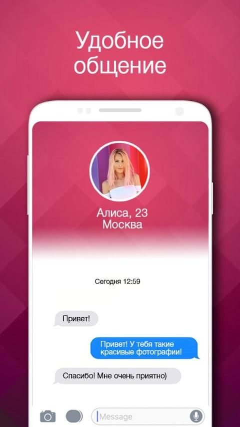 Тысячи людей уже нашли друг друга именно здесь! Ты просто загружаешь приложение, заполняешь анкету, проходишь психологическое тестирование, а приложение выдает тебе сотни вариантов согласно твоим требованиям и геолокации. Среди них ты непременно найдешь того, кого ищешь. Также сайт предоставляет возможность обмениваться смайлами, подарками, загрузить личные фото на свою страницу. При желании часть информации можно скрыть, а назойливых поклонников заблокировать. Найди свою любовь прямо сейчас!
