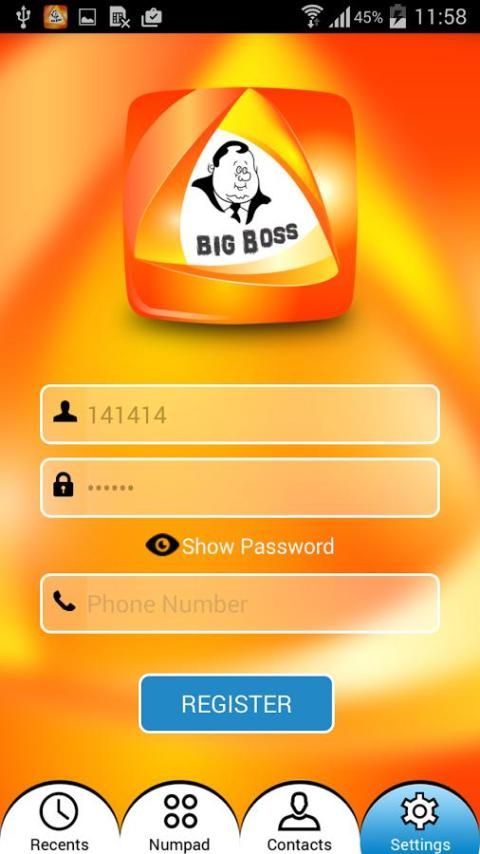 BigBoss adalah Dialer Mobile yang memungkinkan untuk membuat panggilan VoIP dari salah satu perangkat android dan menggunakan 3G / Ujung / konektivitas internet Wi-Fi. Hal ini dikembangkan berdasarkan persyaratan VoIP kebutuhan Penyedia bisnis.
