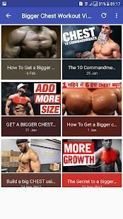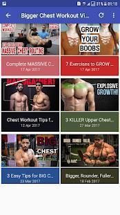 - Chest workout exercises are grouped by muscle group and difficulty level (easy, medium, hard). Video showing how to do each chest workout exercise. Setting voice instructions and timer per chest workout exercise.