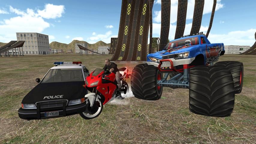 . One monster truck and formula cars are following you.