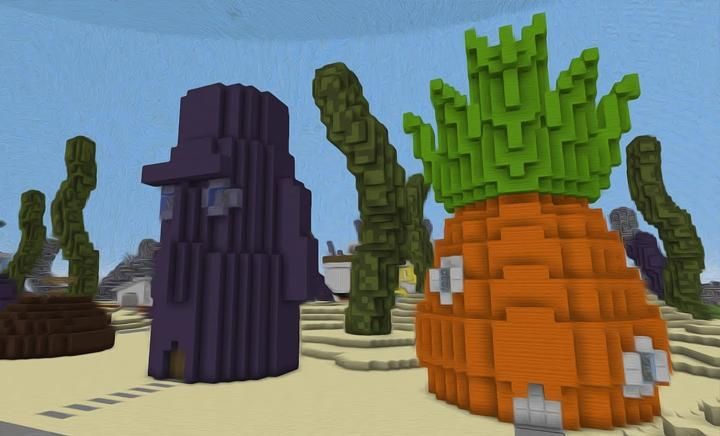 Play in Bikini Bottom Mod installing the mod for Minecraft PE. Automatically download map with this app. You will enter the world of sponge under the sea. On this map you will find everything you need to visit the favorite places of the series.