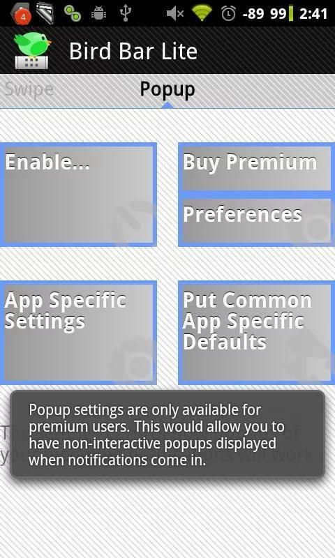 App specific settings for premium users in popups