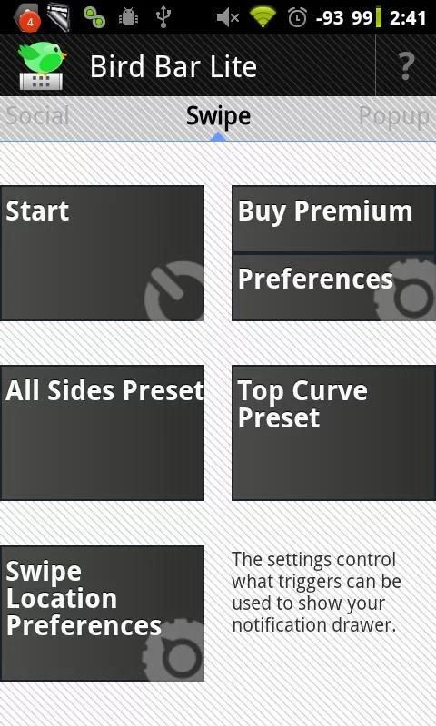 Versi LITE memberikan semua yang disebutkan di atas dengan tidak ada iklan, tapi dengan kustomisasi yang sangat terbatas. Anda mendapatkan pilihan klasik, swipe dari arah dengan opsi sensitivitas menengah atau yang baru yang membuat gesekan sudut terlihat, meningkatkan sensitivitas, dan hanya membuat sisi atas dan atas dapat digesek.