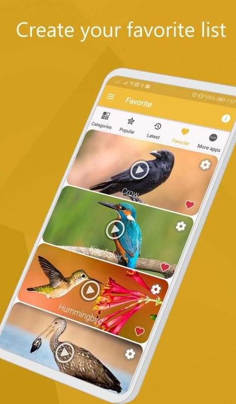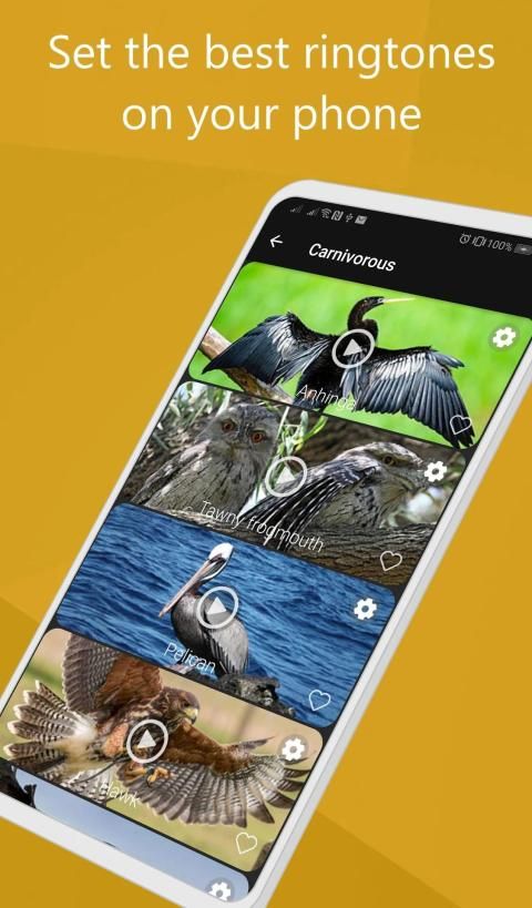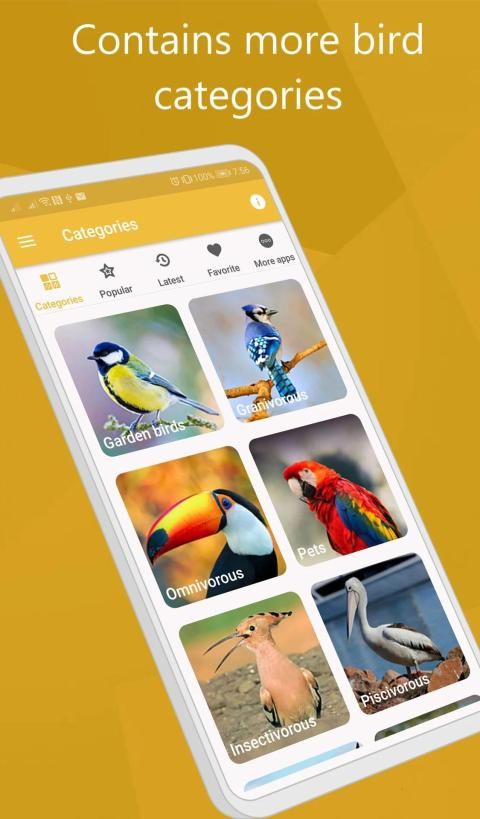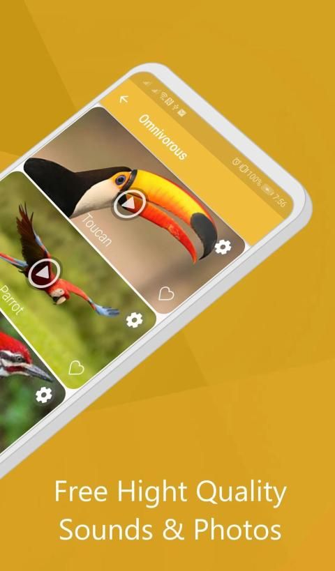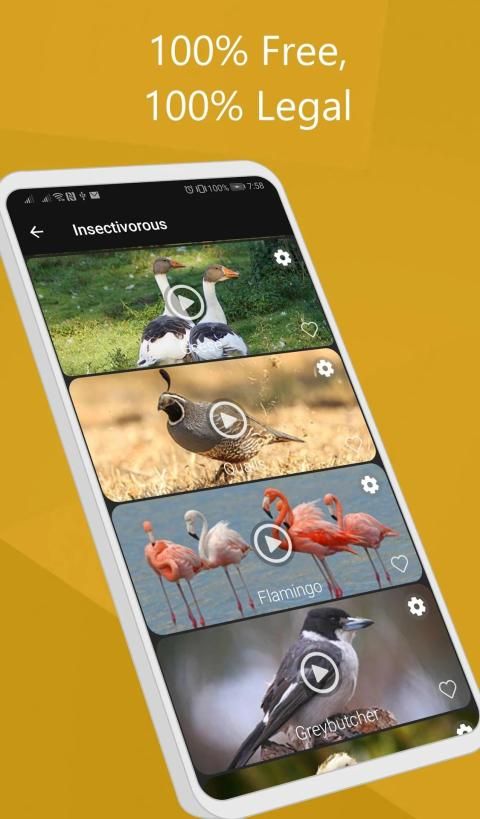 Dalam aplikasi panggilan burung ini ada 100+ suara burung yang dapat Anda gunakan pengidentifikasi panggilan burung. Jika Anda lebih tertarik dengan penyanyi, maka Anda selalu dapat memilih yang paling cocok untuk Anda seperti kookaburra, skylark, blue jay, dan warbler. Dan tentu saja, siapa yang bisa menolak nyanyian burung yang indah seperti burung bulbul, kardinal dan burung pipit.
