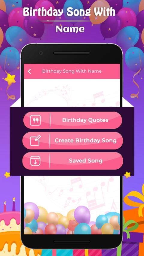 application. Get ready to make a special birthday song with name, this application is a special design to download your wish name birthday song. Application also provides users to share English or Hindi birthday quotes to anyone, you need to type a name and direct share it on your social sites.