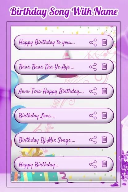 Collection of Different birthday song included in this app. My Name Birthday Song Maker is also same as birthday song maker, Birthday dp & status, birthday photo frame, birthday cake photo frame and birthday movie maker.Send the most exciting and original Happy Birthday singing Song wishes personalized with your friends and family member own name!