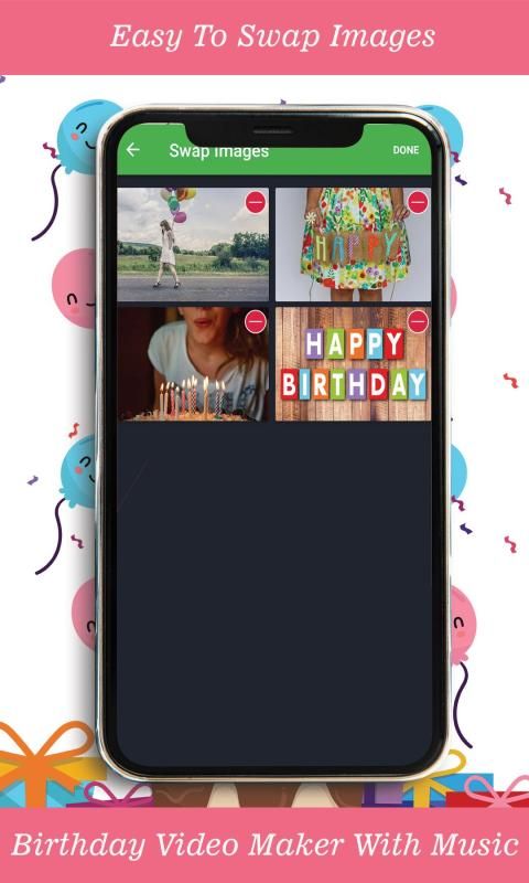 Create unlimited birthday video with music using photo, Also given great song and birthday frames.