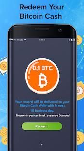 Have you ever used special offers and tasks in mobile games to get a more advanced weapon or armory for your gaming character? Well, our application works in a same way. Your mission is to earn satoshi that can be withdrawed or exchanged for real money. The idea is to break a crystal. It keeps precious cash inside. However, you need to click 1 000 000 times on it to get your satoshi. We have designed additional boosters and features to make the process as entertaining and fast as possible. Make sure you have a Bitcoin cash wallet.