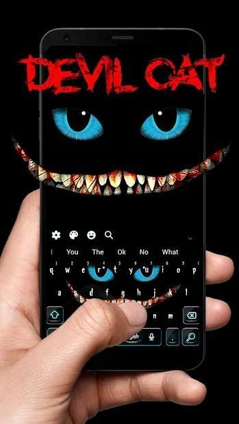 : Beautiful Black Devil Cat Smile Keyboard Theme, cool chatting sms keyboard theme, devil cat smile keyboard theme or glow shiny dark black horror keyboard theme or 2018 new keyboard themes, etc. Just choose what you love.