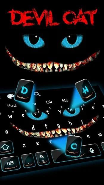 Beautiful Black Devil Cat Smile Keyboard Theme is an amazingly dark black background Keyboard Theme2018 app for phones and tablets that has many SMS Themes keyboard skins for you.