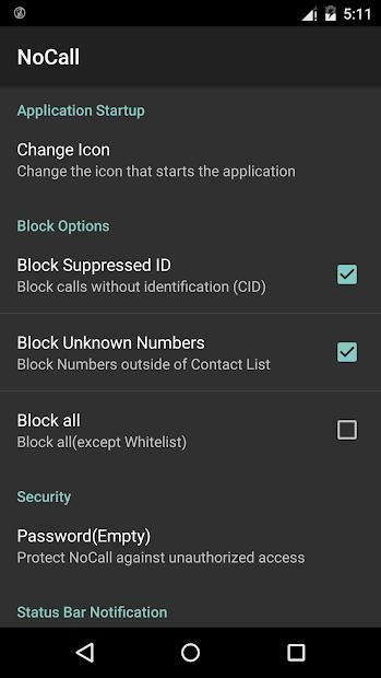 No Call adalah Blacklist, Call Blocker / Panggilan Filter untuk Android. Hal ini memungkinkan Anda untuk membuat daftar yang panggilan yang dapat diblokir atau diterima.