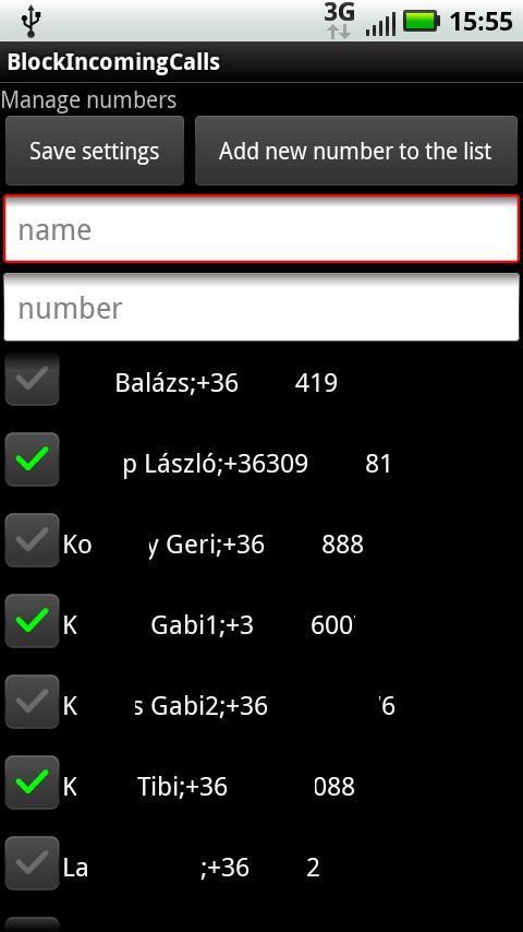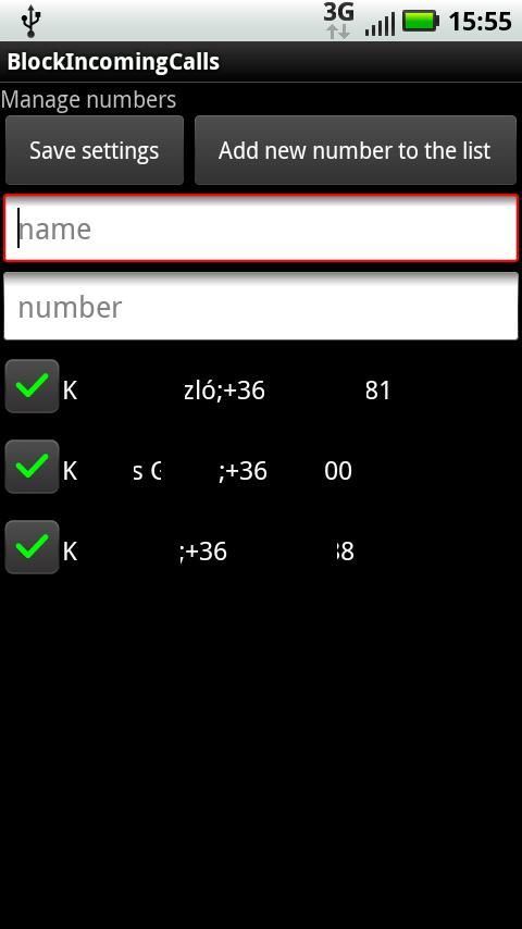 Dalam menu Anda dapat menambahkan nomor baru dengan yang diblokir sama seperti pada menu sebelumnya.