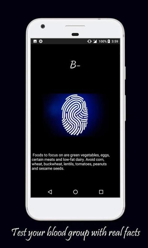 Di mana Anda dapat menguji golongan darah Anda hanya dengan pemindaian jari Anda;) bukan hanya bahwa dengan kelompok tertentu Anda juga dapat melihat apa makanan yang Anda harus makan lebih sehat dan bugar