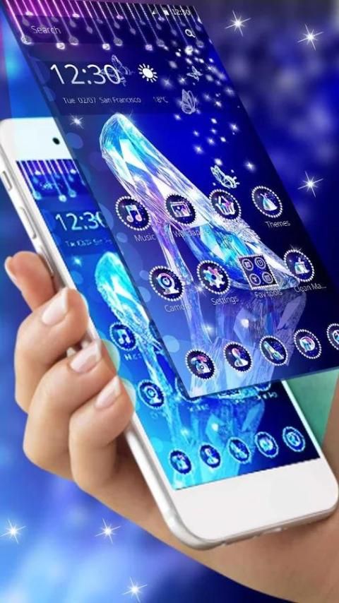 • Sesuaikan ponsel android Anda dengan Biru Gadis Slipper Launcher Tema.