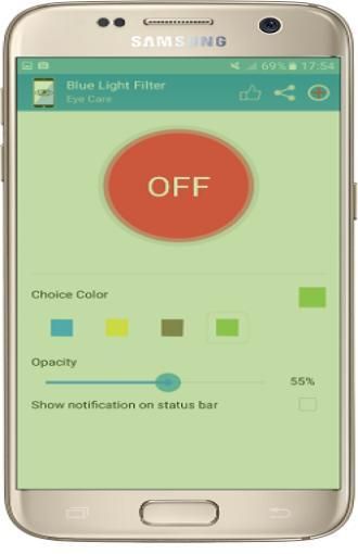 - Layar aplikasi cahaya penyaring menyesuaikan warna layar Anda untuk mengurangi cahaya biru dan membantu mata Anda untuk tertidur dengan layar malam.