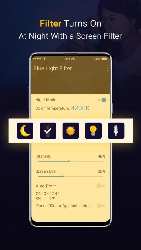 adalah filter malam optimal yang dibuat untuk memberikan layar malam yang hangat untuk memastikan perawatan mata terhadap panjang gelombang biru muda dari cahaya layar dan memberikan Anda pembacaan malam yang menyenangkan sambil menyembuhkan sulit tidur setelah senja dengan mode malam. Gunakan cahaya malam anti silau untuk meredakan ketegangan mata dan melindungi mata dari fluks yang sangat dingin yang dapat mengganggu ritme sirkadian, menyebabkan insomnia dan kegelisahan, migrain kronis, sakit kepala kronis tanpa tidur, glaukoma dan katarak.