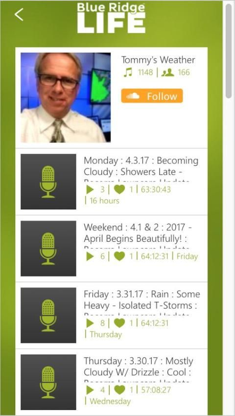 - Dengarkan weathercast harian Tommy Stafford.