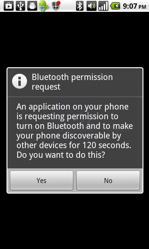Tombol kanan meminta sistem operasi Android untuk membuat perangkat Anda terlihat selama 120 detik. Sistem Android kemudian akan meminta Anda untuk mengkonfirmasi tindakan ini. A "Reminder" halaman kemudian akan ditampilkan dengan "terlihat" ikon. Halaman ini Pengingat otomatis akan menutup ketika periode visibilitas berakhir. Selain itu Anda dapat menutup halaman ini Reminder setiap saat menggunakan perangkat Android tombol Back. Jika Anda tidak mengkonfirmasi permintaan visibilitas, halaman Pengingat akan tetap terlihat dan Anda akan perlu untuk menutupnya menggunakan perangkat tombol Back.