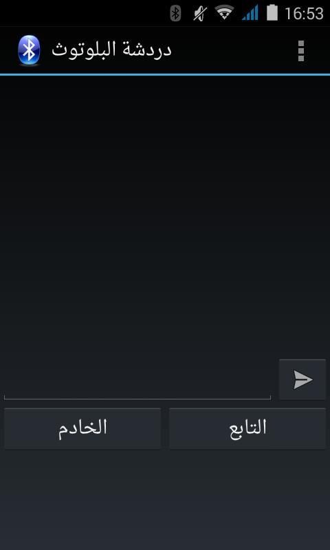 برنامج دردشة البلوتوث Bluetooth chat برنامج المحادثات النصية عبر البلوتوث bluetooth في اجهزة بويكت بي سي وسمارت فون وغيرها من الاجهزة التي تعمل على نظام التشغيل Android موبايل بكل سهولة ويسر وروعه الان استخدم البلوتوث في جوالك وكن الافضل بين اصحابك طبعأً يجب ان يكون البرنامج لديك ولدى صديقك وايضاً يجب ان تكون المسافة قريبة على مدى البلوتوث.