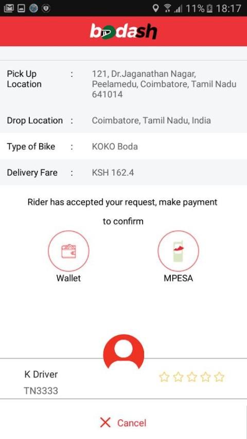 penumpang Bodash adalah mudah, naik terjangkau untuk mendapatkan Anda di mana Anda ingin pergi dengan menggunakan sepeda motor (boda boda). layanan Bodash fleksibel dan dapat diandalkan. Hal ini dapat membawa Anda ke tempat-tempat di mana taksi tidak bisa mendapatkan Anda. Anda tidak perlu khawatir tentang penundaan dari kemacetan lalu lintas. Kami akan membuat Anda di sana pada waktu, setiap waktu. Tidak seperti sepeda motor lain di jalan, Bodash wahana yang aman dan nyaman.