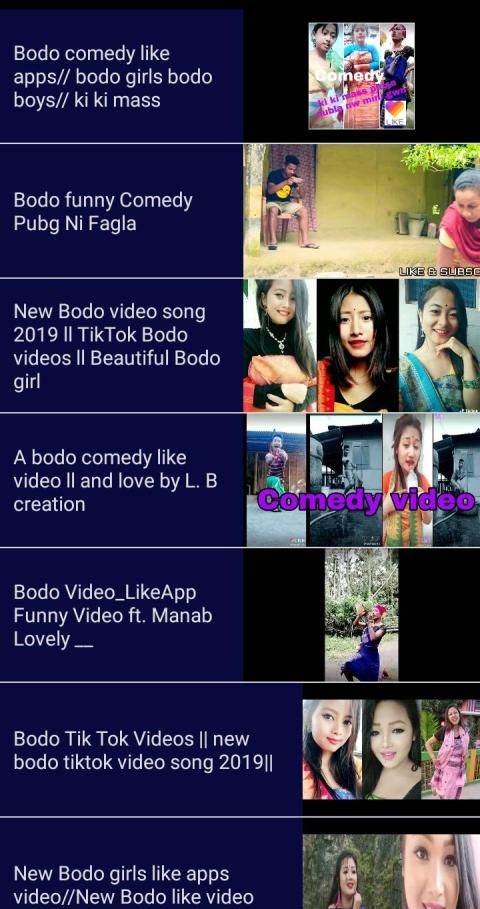 Here is the good collection of Bodo Like Comedy videos. Download and enjoy all new coming bodo tik tok and bodo like app comedy videos from famous bodo comedy actors right in this app.