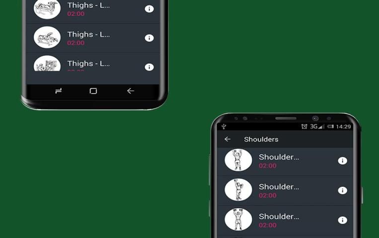 binaraga terdiri dari stopwatch yang akan menghitung waktu setiap seri latihan dan Anda juga dapat mengatur waktu hidup latihan.