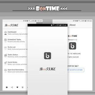 "BonTIME" adalah sebuah aplikasi yang dirancang untuk memberikan begitu banyak fungsi yang membantu Anda untuk mengelola tugas-tugas Anda menjadwalkan untuk melakukannya pada waktu.