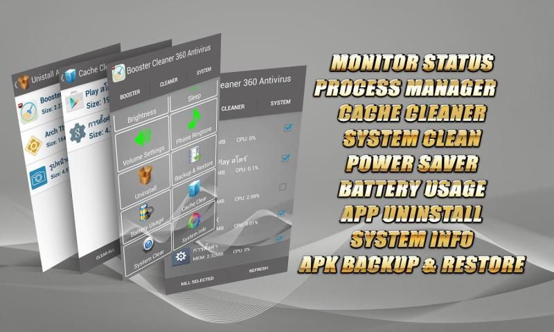 Booster Cleaner 360 Antivirus is one of the system utility tool that improves your androids performance. It increases your phones performance and saves battery life. Apparently which boost your system os and memory. It also has process manager which let you clean system running apps. It included with Backup & Restore feature that help you backup apps as apk file and restore when you need them.System Cleaner feature cleans Cache, Thumbnail Cache, Log File, Empty Folder, Browser History, Clipboard, Market History, Gmail History, Google Map History and junk cleaning