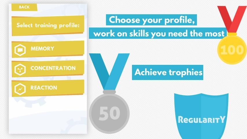 Latihan waktu memori, konsentrasi dan reaksi Anda dengan aplikasi pelatihan otak berdasarkan laporan ilmiah. Kami menyiapkan seperangkat unik permainan otak adiktif di kategori yang berbeda untuk memperkuat keterampilan kognitif Anda. Kumpulkan neuropoints, mencapai tingkat baru dalam permainan pikiran dan mengumpulkan lencana. Memanfaatkan profil pelatihan yang dapat membantu Anda mengembangkan keterampilan yang paling Anda butuhkan. Setelah setiap pertandingan yang dimainkan membaca fakta-fakta tentang otak manusia. Selengkapnya tentang diet, aktivitas dan kebiasaan baik yang membantu otak Anda. Gunakan secara teratur untuk mendapatkan hasil terbaik. Ikuti potensial Anda.