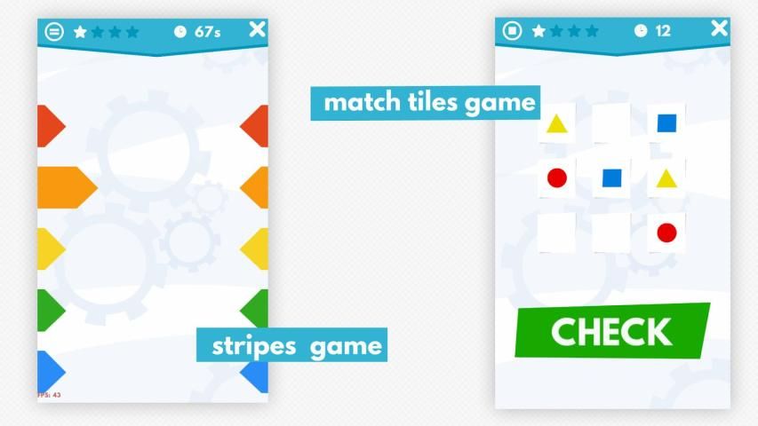 ✓ 8 permainan otak untuk keterampilan kognitif seperti konsentrasi, memori dan waktu reaksi