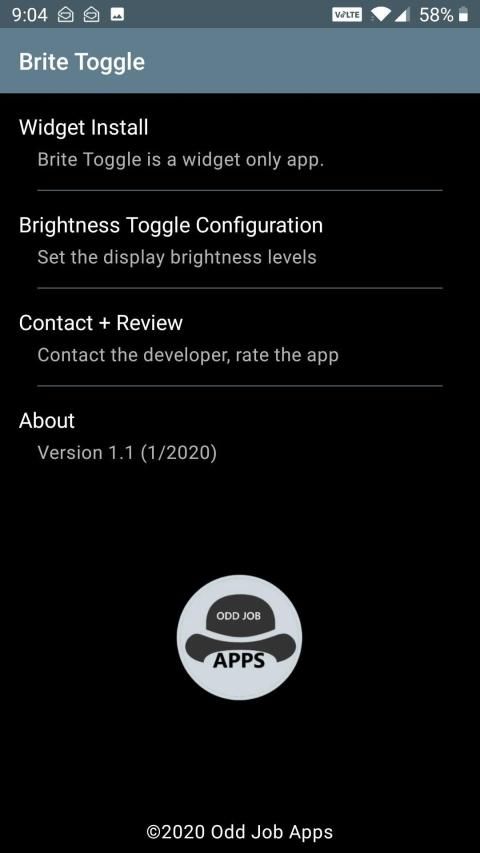 The Brite Toggle Widget allows the easy switching between three preset display brightness levels.