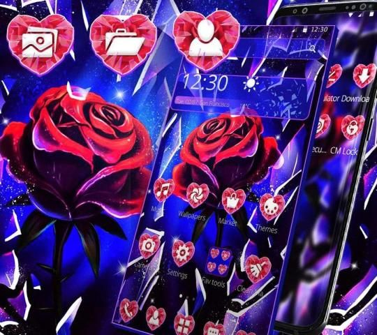 Tema Mawar merah menampilkan gambar latar Kaca dan puluhan ikon Rusak yang mencakup sebagian besar aplikasi yang biasanya Anda gunakan. Dengan tema Rusak ini, Anda takkan pernah ketinggalan topik yang terbaru dan paling trendi.
