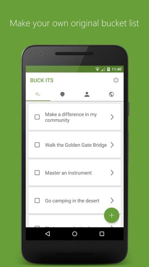 Pernah bertanya-tanya apa yang orang-orang di sekitar Anda bercita-cita untuk? Apa harta karun di daerah Anda mereka sudah mendengar tentang tetapi belum sempat untuk menjelajahi belum? Buck Ini menunjukkan Anda tujuan pengguna di dekat Anda, jadi apakah Anda terjebak di ruang bawah tanah orang tua Anda 'atau berlibur di sebuah pulau tropis, Anda dapat menemukan sebuah petualangan.