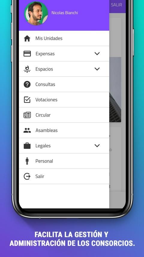 Usted podrá pagar las expensas, tener acceso en tiempo real a los gastos comunes, remuneraciones, mensajería, informes, control de accesos, reservas de instalaciones, mas seguridad con nuestro botón de emergencia y mas comodidades, todo a través de nuestra plataforma y aplicación móvil para inquilinos y propietarios.