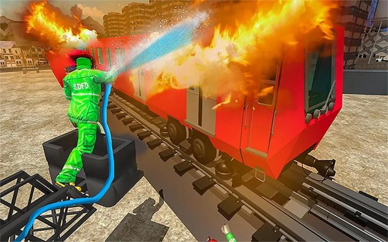 Burning Metro Train-Emergency Fire Engine Driver is a thrilling and adventurous game that guarantees endless fun and entertainment. This game requires you to simulate a fire rescue vehicle, drive it towards the train that has caught fire, and extinguish the fire to save the lives of people.