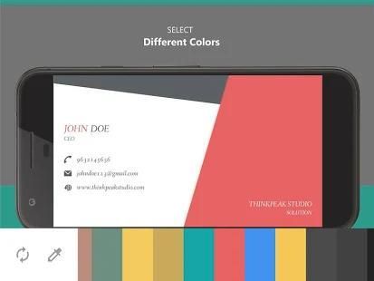 You need to provide your information that you want to display on your business card. Then the app will let you choose different card design, different font, different color, etc.