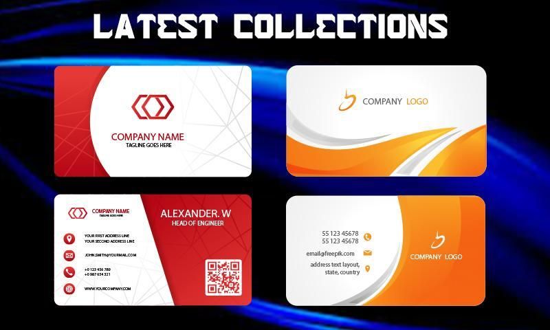 Smart business card templates, visiting card samples helps you create a best business card designs my own. You can also create QR code from the internet and add the image to visiting card. Business card scanner app will scan your name card faster.
