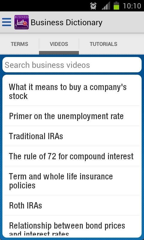 Aplikasi ini akan bekerja sebagai sumber daya yang besar untuk saku istilah bisnis dan manajemen terkait dan definisi mereka.