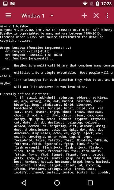 BusyBox X Includes the latest BusyBox root binary v1.26.2 and supports 388 applets (highest among any BusyBox Installer), the most complete set of functions. Supports installation of BusyBox from the application and via recovery from zip archive. (see "Menu - Zip archive"). Tested and Working on Android 7 Nougat.
